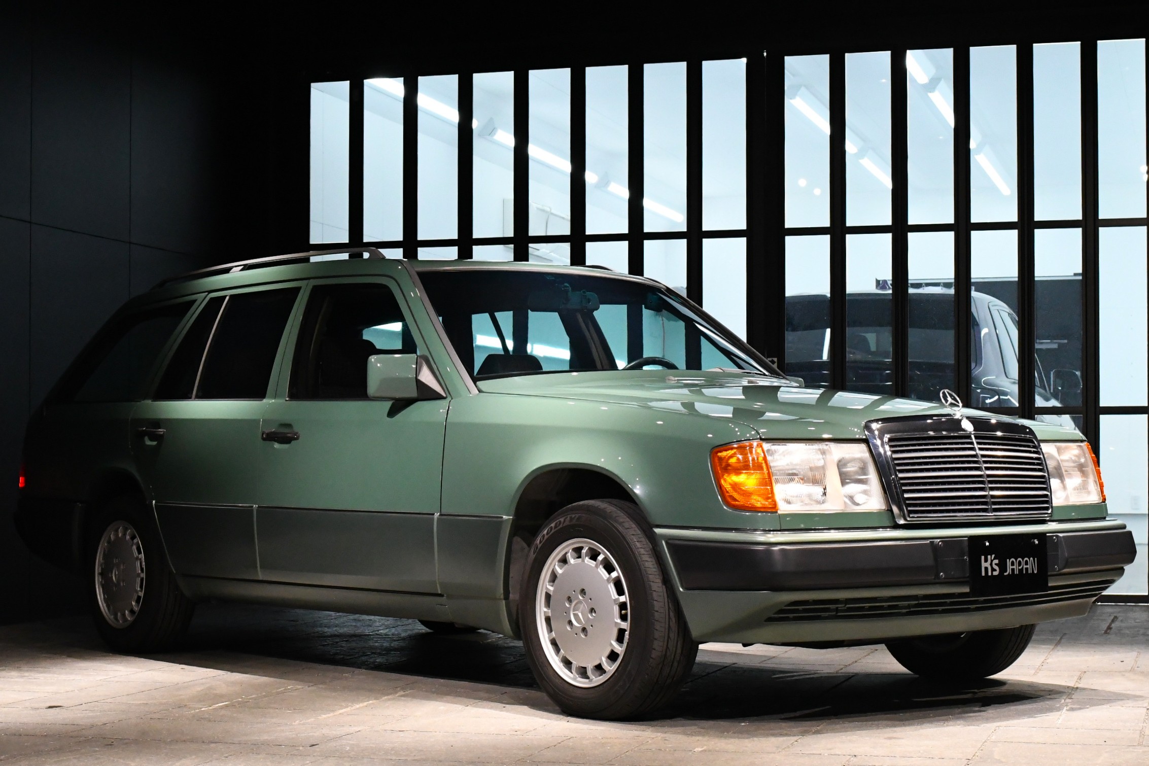 エゲートグリーンは、当時のメルセデスが設定していた落ち着いたグリーン系のソリッドカラーです。現代の中古市場においてはほとんど目にする機会がなく、車両の希少性をさらに高めています。ホワイト・シルバーが多数を占める中古市場において、このカラーの存在感は別格です。